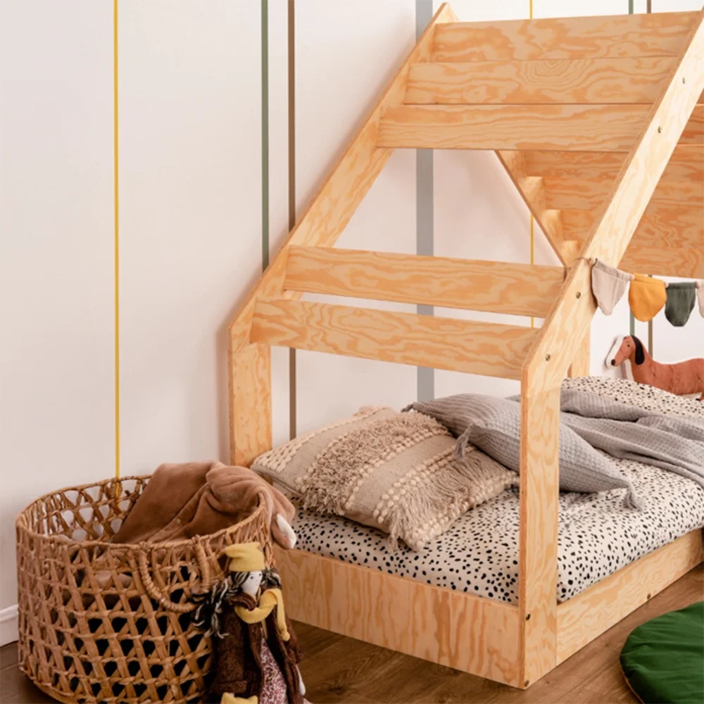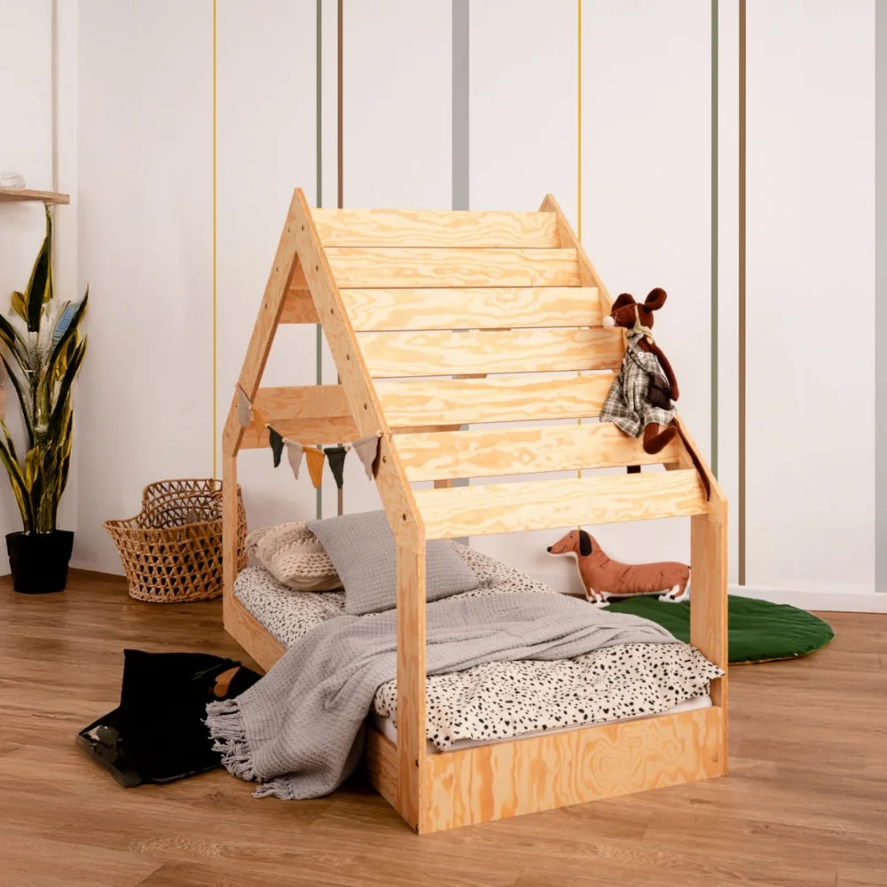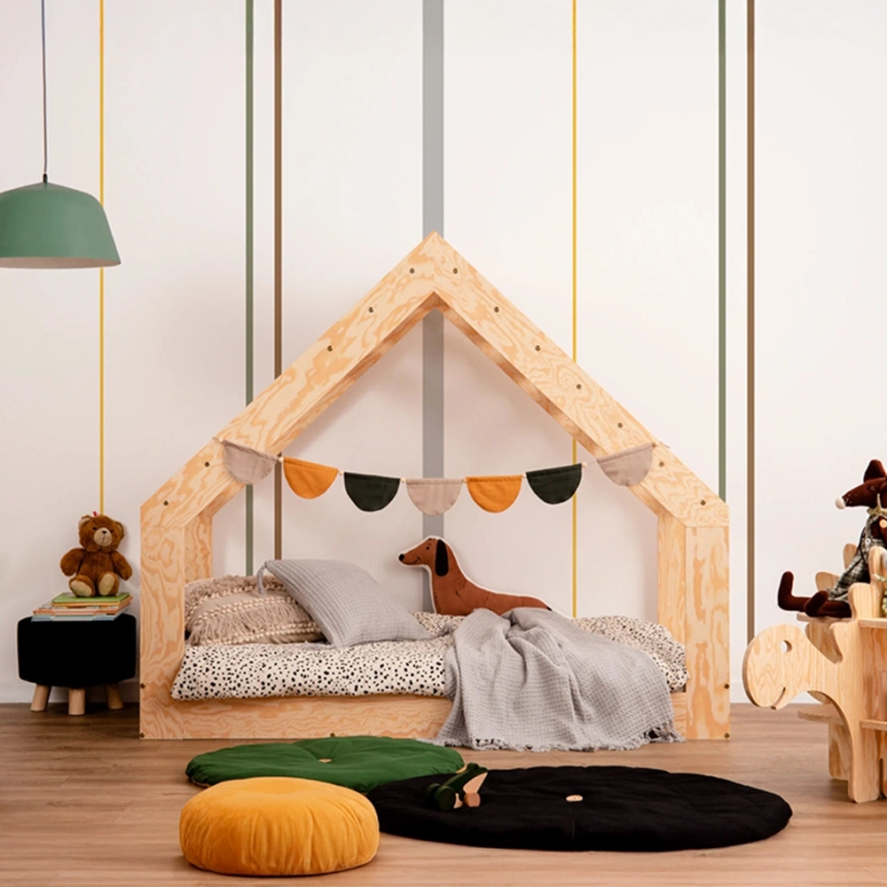 Łóżko domek dla dziecka z niską konstrukcją i stelażem MOON G Montessori Drewniane