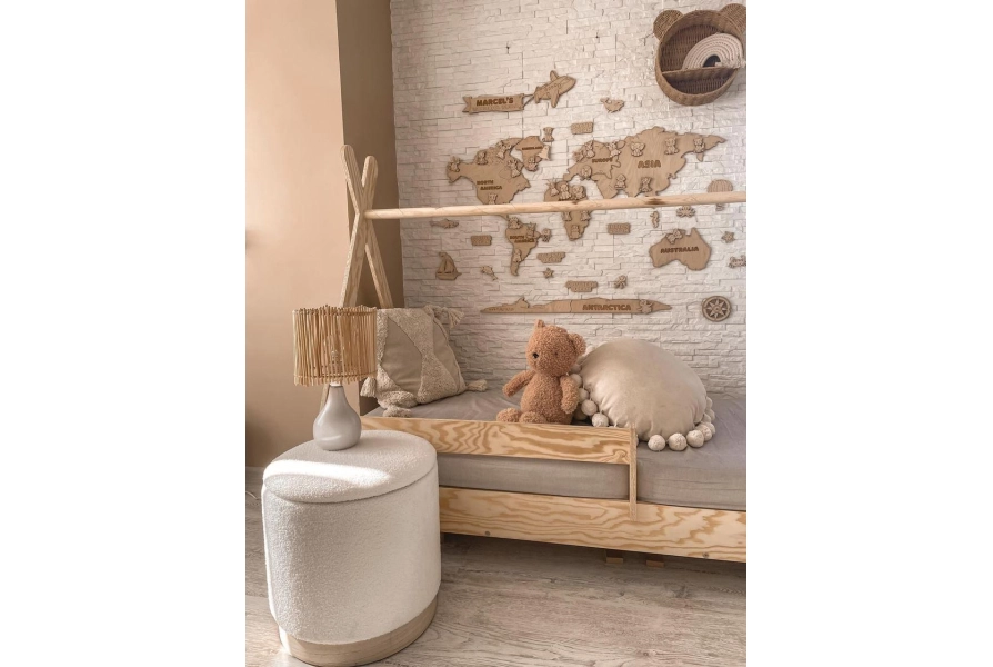 Dzięki przemyślanej konstrukcji, łóżko łączy trwałość z eleganckim wyglądem. Gładkie i delikatnie zaokrąglone krawędzie nadają mu subtelny styl, jednocześnie zapewniając bezpieczeństwo i wygodę użytkowania każdego dnia.