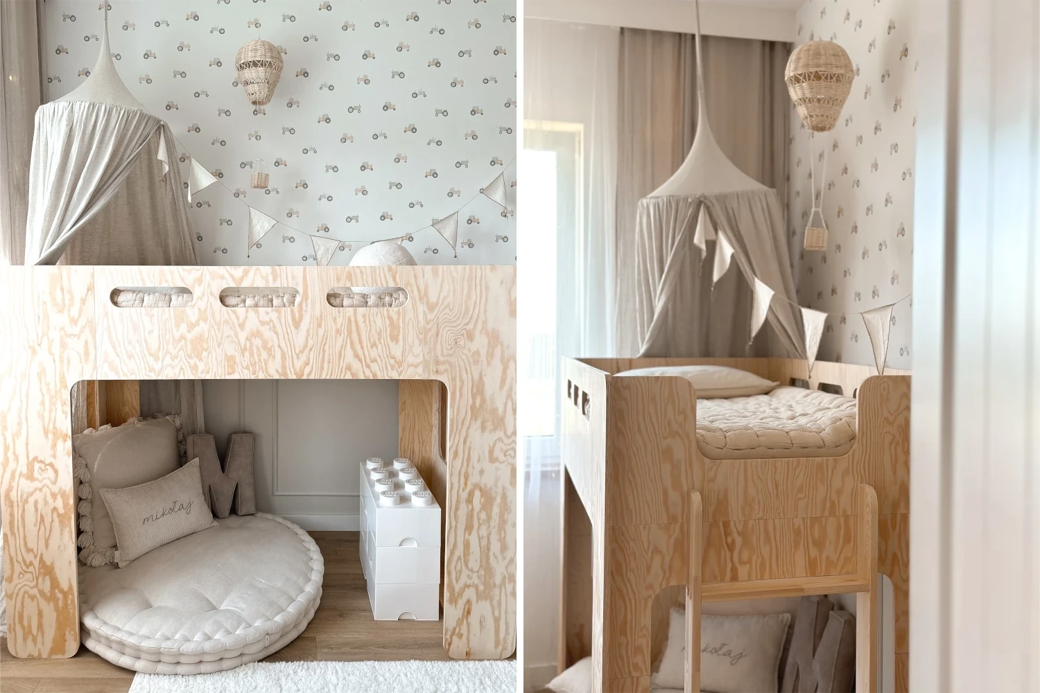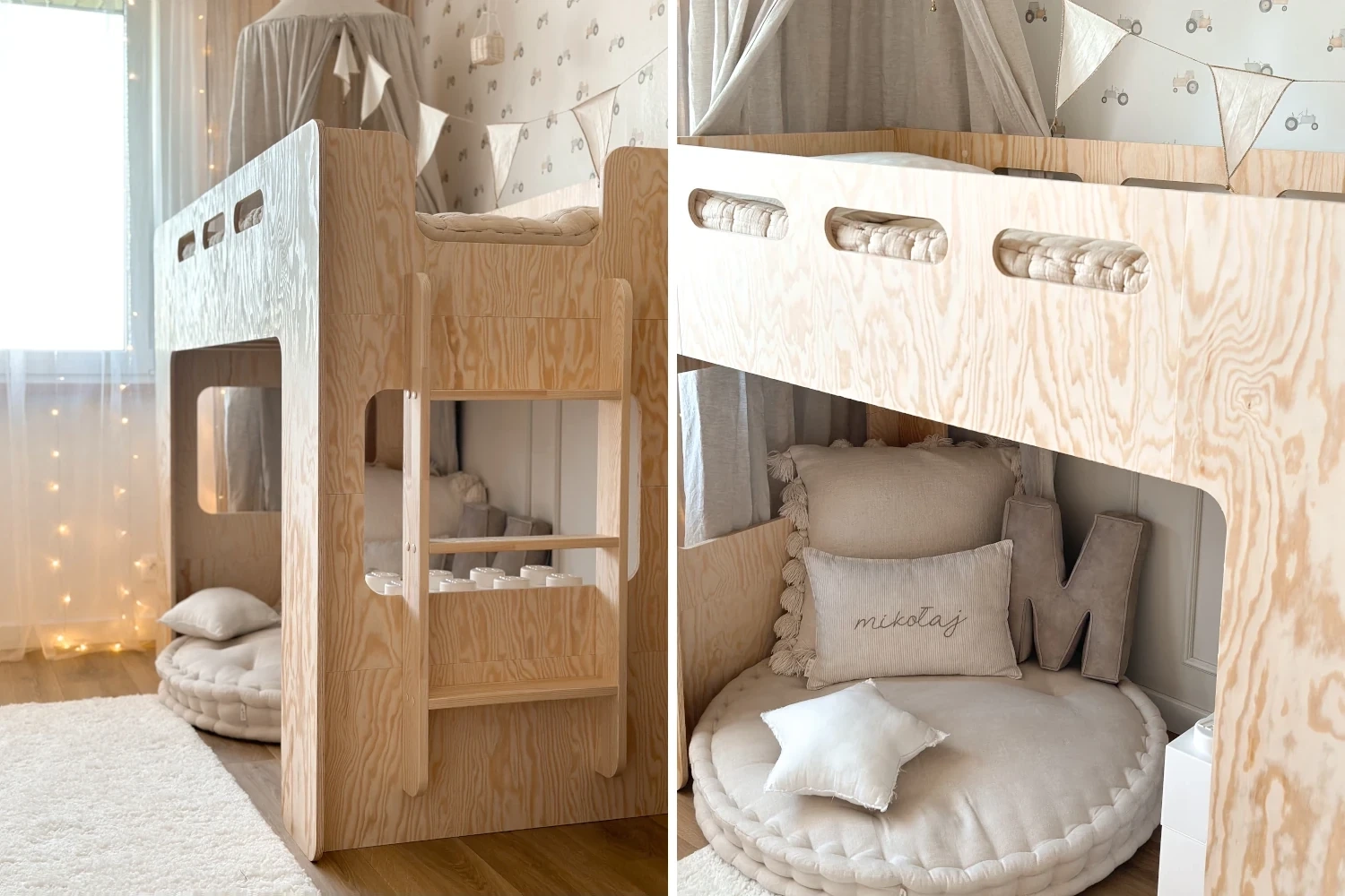 ✔ Przemyślana funkcjonalność – łóżko nie tylko oszczędza miejsce, ale także wprowadza nowoczesny i estetyczny akcent do pokoju dziecięcego.