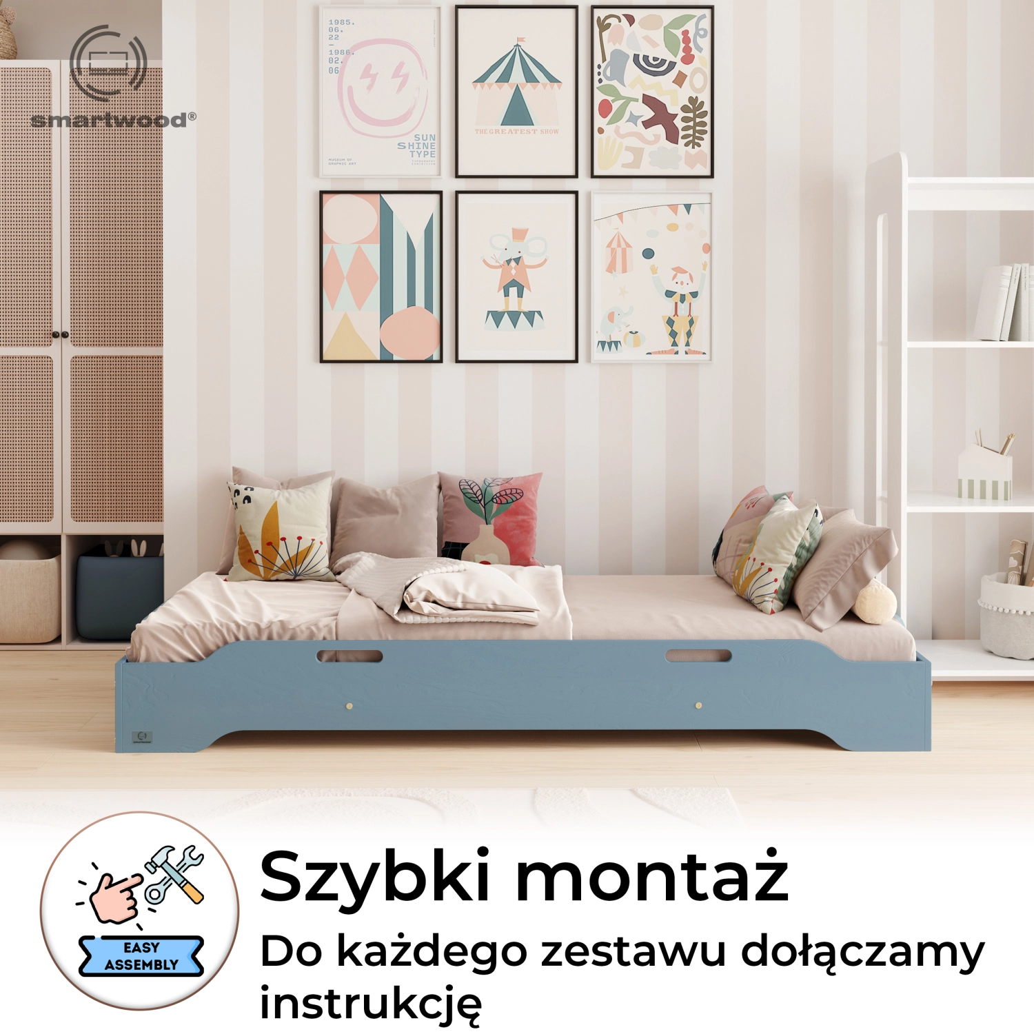 Łóżko pojedyncze dla dzieci podłogowe ze stelażem TILA 8 Montessori Drewniane