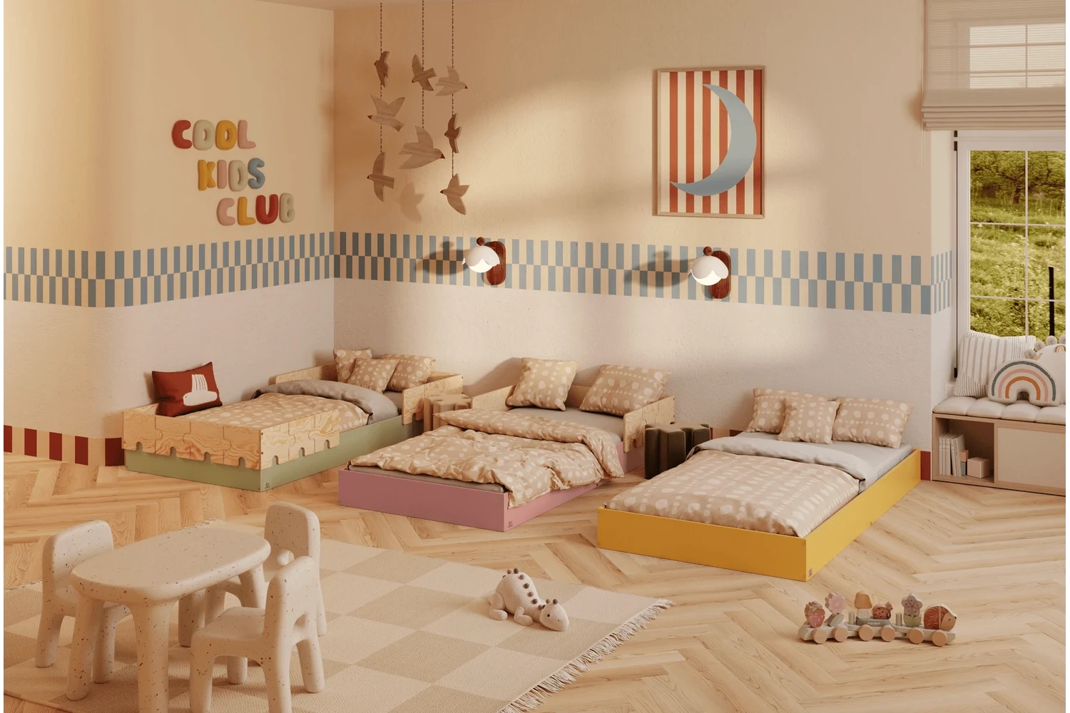 Świetna baza do stworzenia minimalistycznego kącika do spania lub strefy relaksu. Niska konstrukcja nadal sprzyja bezpieczeństwu, ale daje pełną swobodę ruchu.