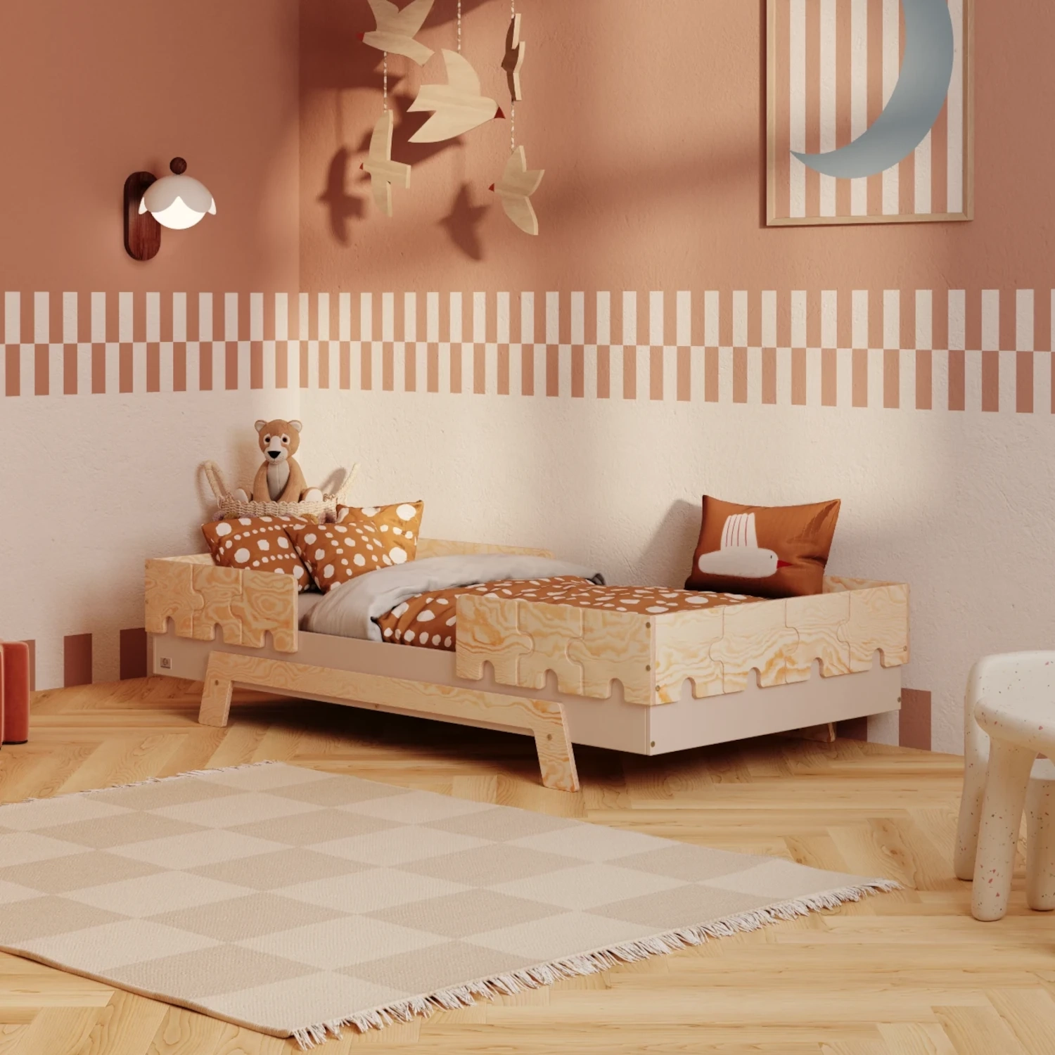 Łóżko Puzzle to modułowy mebel, który dopasujesz do wieku, temperamentu i etapu rozwoju dziecka. Charakterystyczne barierki w kształcie puzzli nie tylko pięknie wyglądają, ale przede wszystkim dbają o bezpieczeństwo – zwłaszcza u najmłodszych, bardzo ruchliwych maluchów.