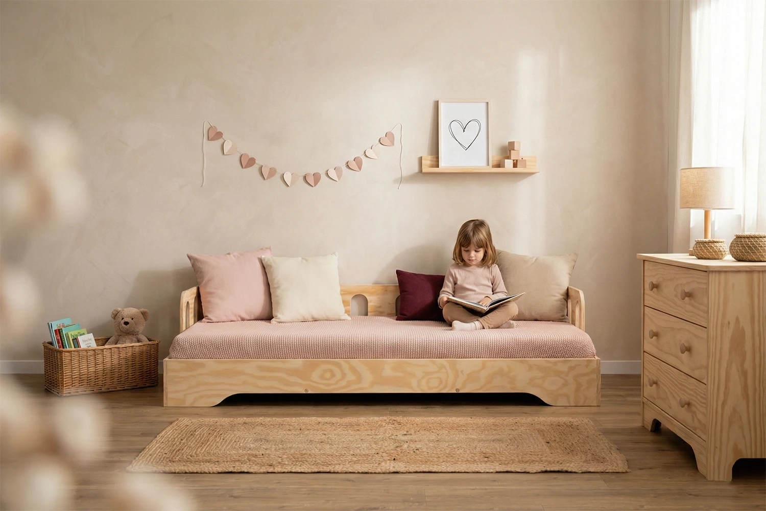 Odkryj łóżko dziecięce TILA 1S, które łączy minimalistyczny design z funkcjonalnością, spełniając potrzeby zarówno dzieci, jak i rodziców. Dzięki niskiej wysokości łóżeczka, Twój maluch z łatwością wejdzie i wyjdzie z niego samodzielnie, co wspiera rozwój zdolności motorycznych oraz wzmacnia poczucie niezależności.