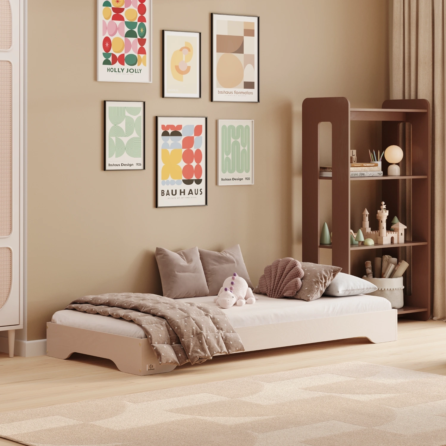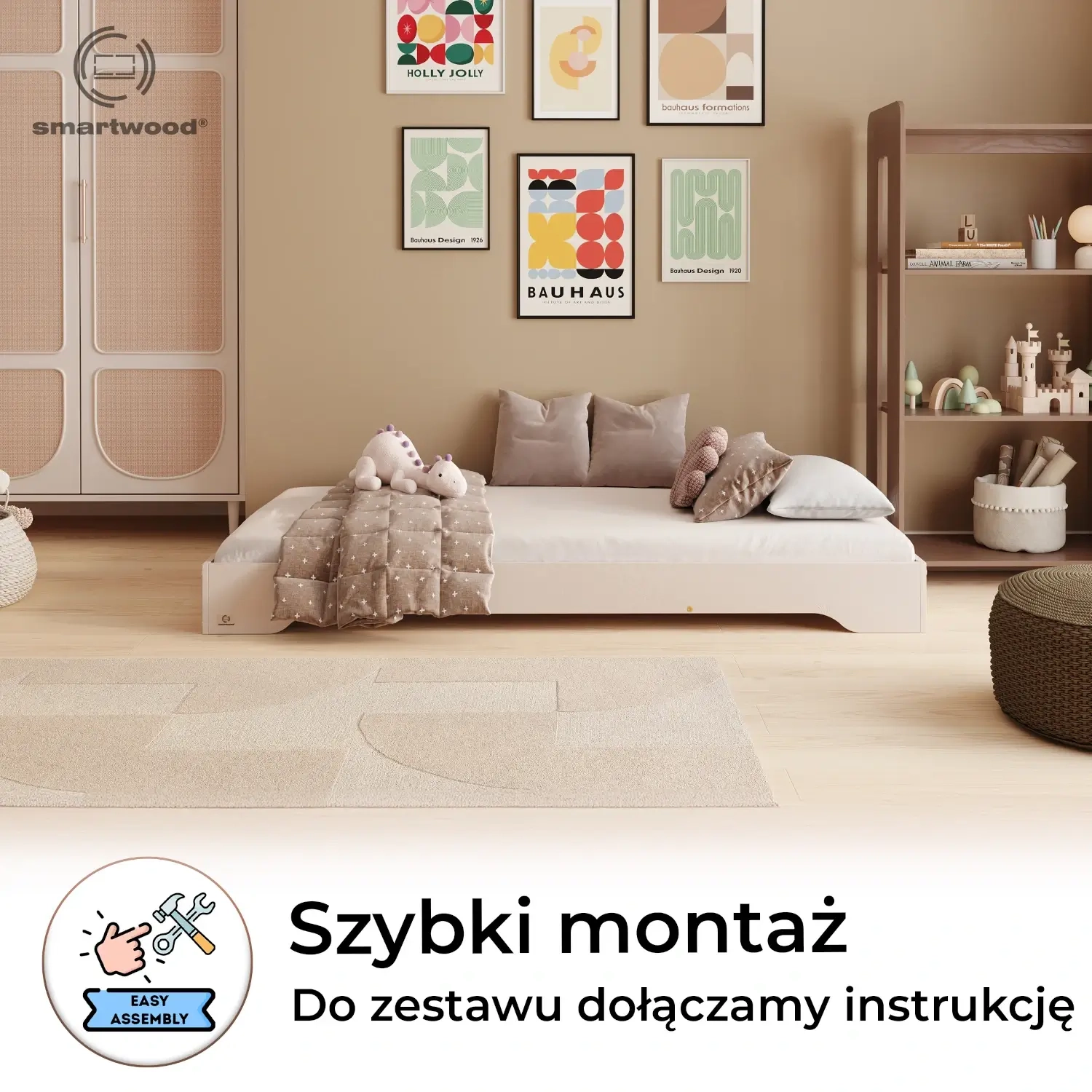 ✔ Dostępność na miarę dziecka – niska konstrukcja łóżka umożliwia swobodny dostęp, wspierając rozwój motoryczny, niezależność i poczucie samodzielności.