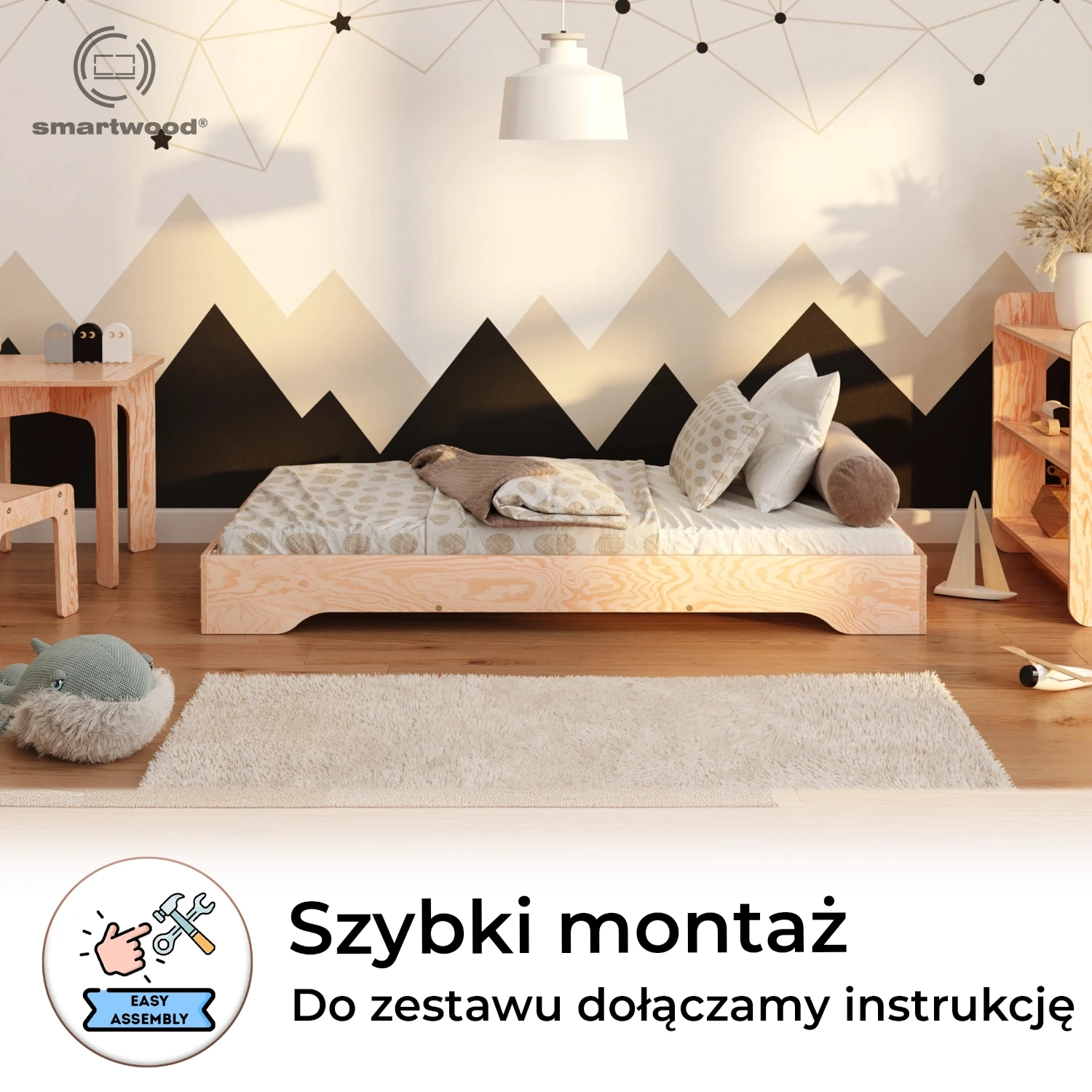 DOKŁADNE WYMIARYŁóżko pojedyncze dla dzieci podłogowe ze stelażem TILA 7 Montessori Drewniane