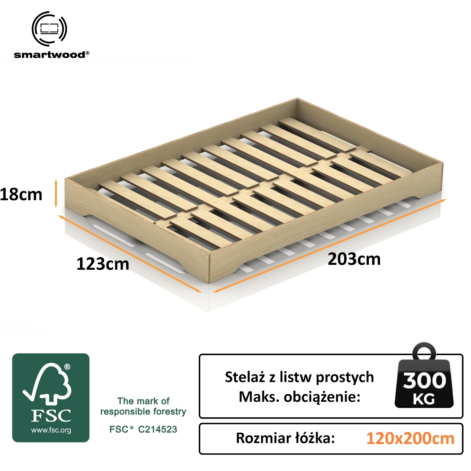 Mniejsze rozmiary posiadają stelaż z listew giętych, rozmiary od 120cm szerokości posiadają stelaż z listew prostych.