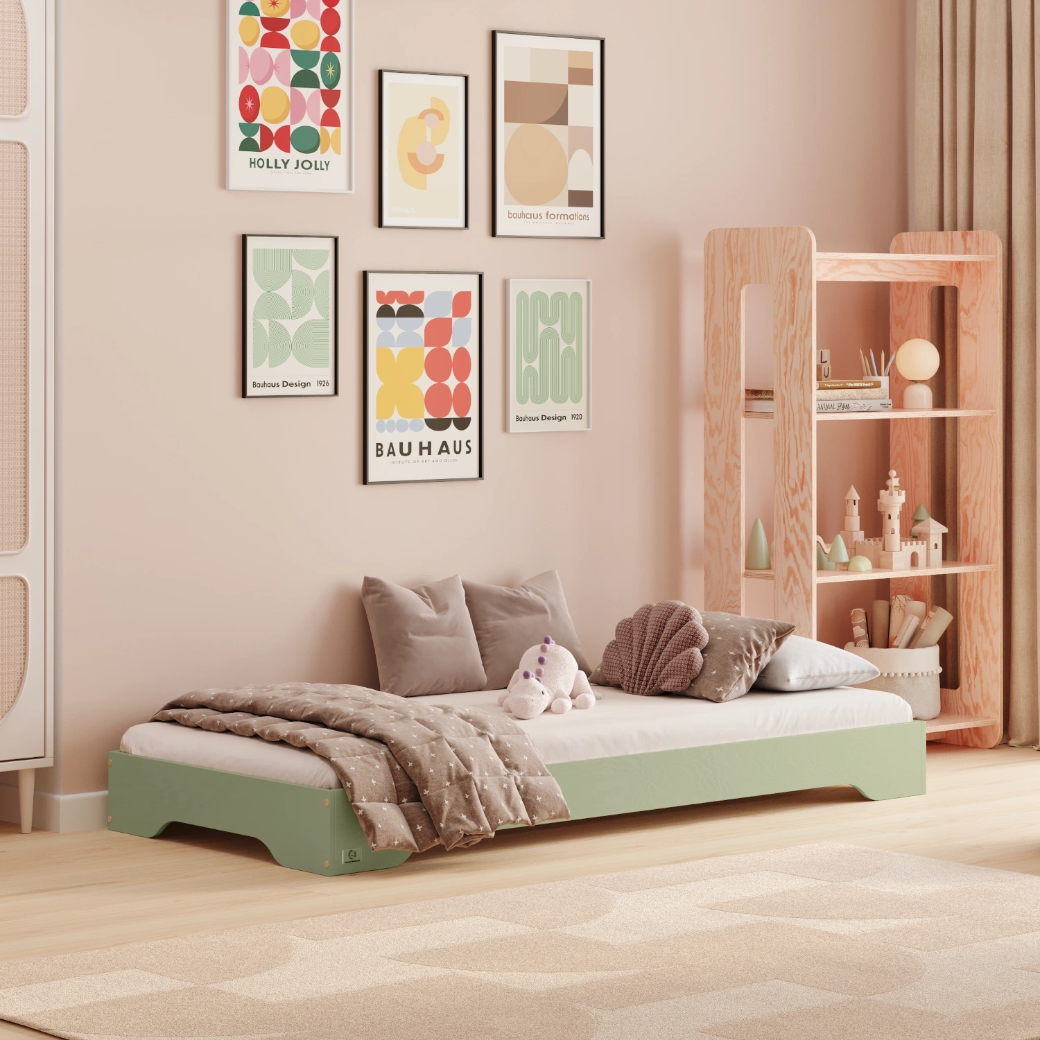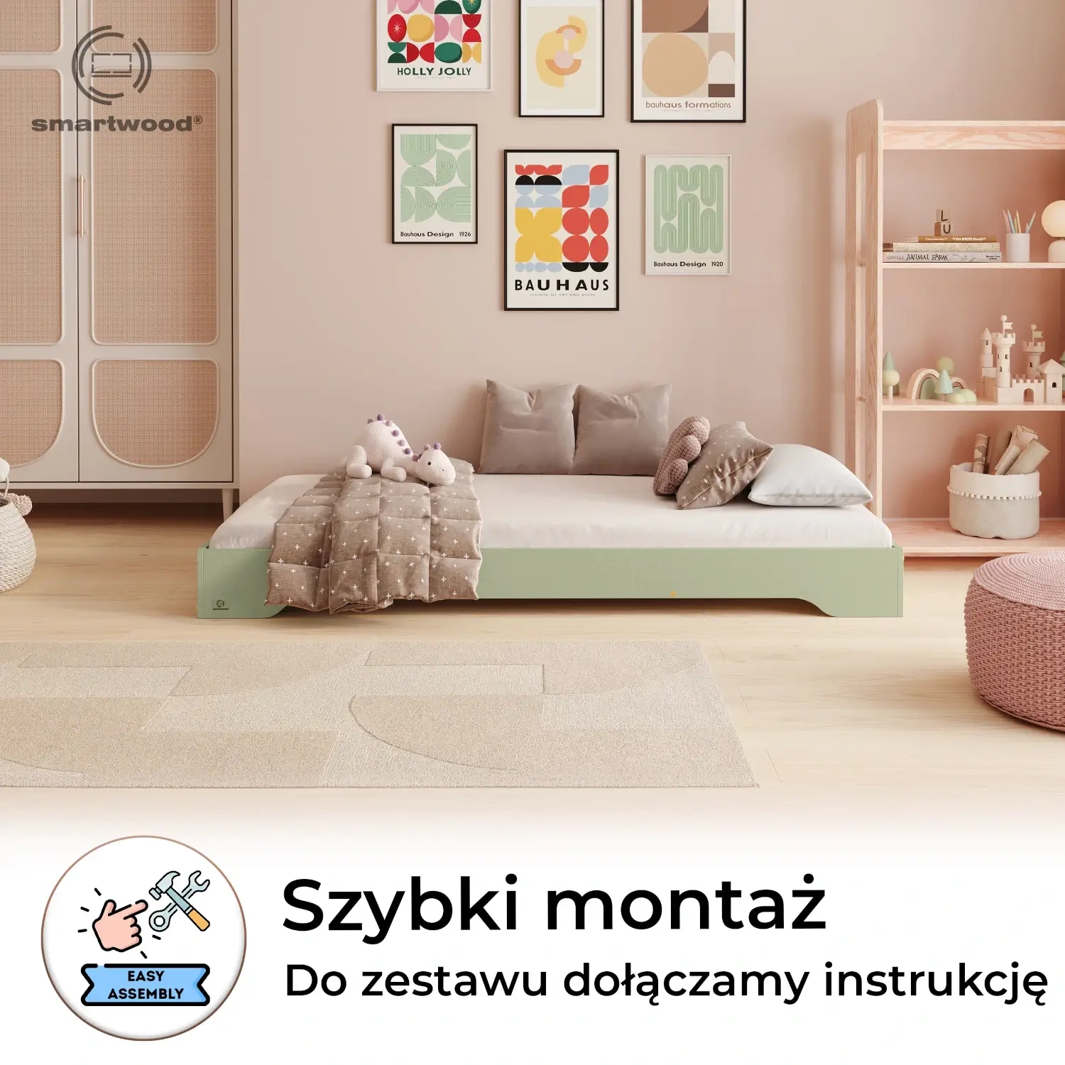 ✔ Dostępność na miarę dziecka – niska konstrukcja łóżka umożliwia swobodny dostęp, wspierając rozwój motoryczny, niezależność i poczucie samodzielności.