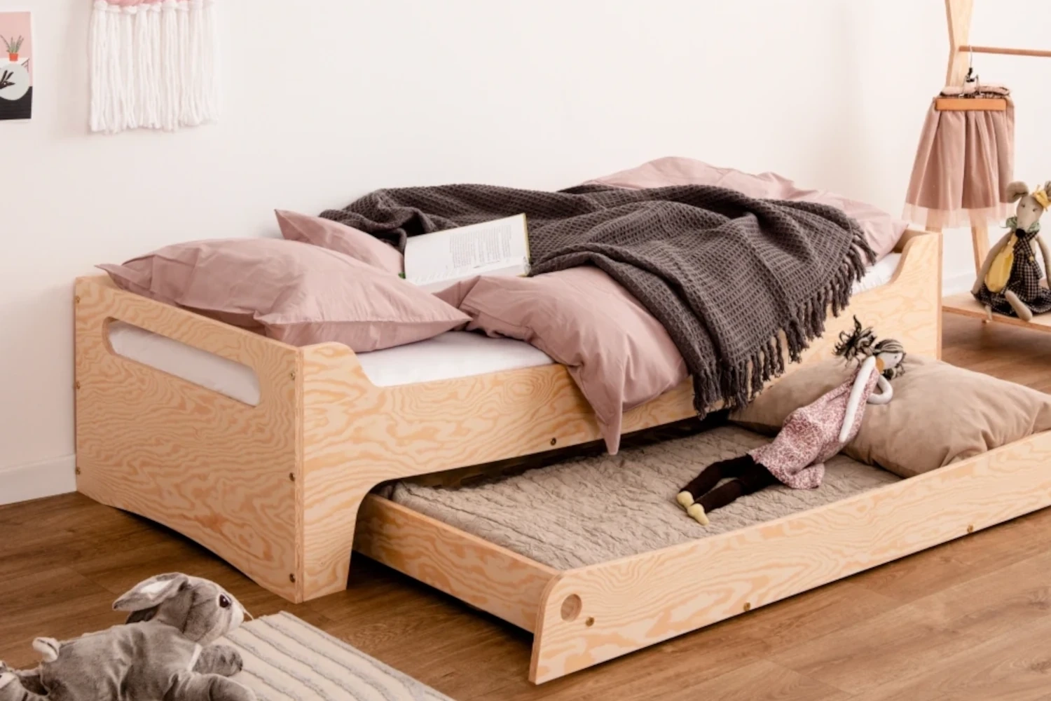 Łóżko dziecięce z szufladą i stelażem TILA 10 Montessori Drewniane