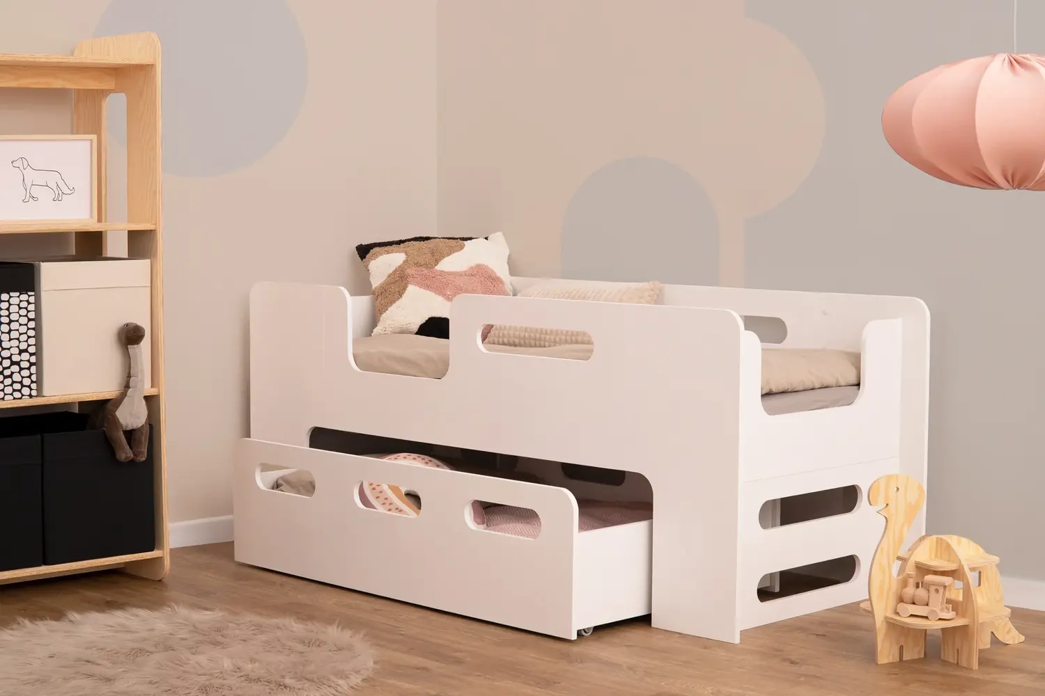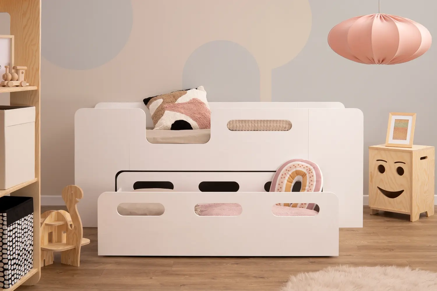 ✔ Wszechstronność użytkowania – wyposażone w szufladę na gumowych kółkach, która może służyć jako dodatkowa powierzchnia do spania lub praktyczne miejsce do przechowywania zabawek, pościeli i innych dziecięcych skarbów.