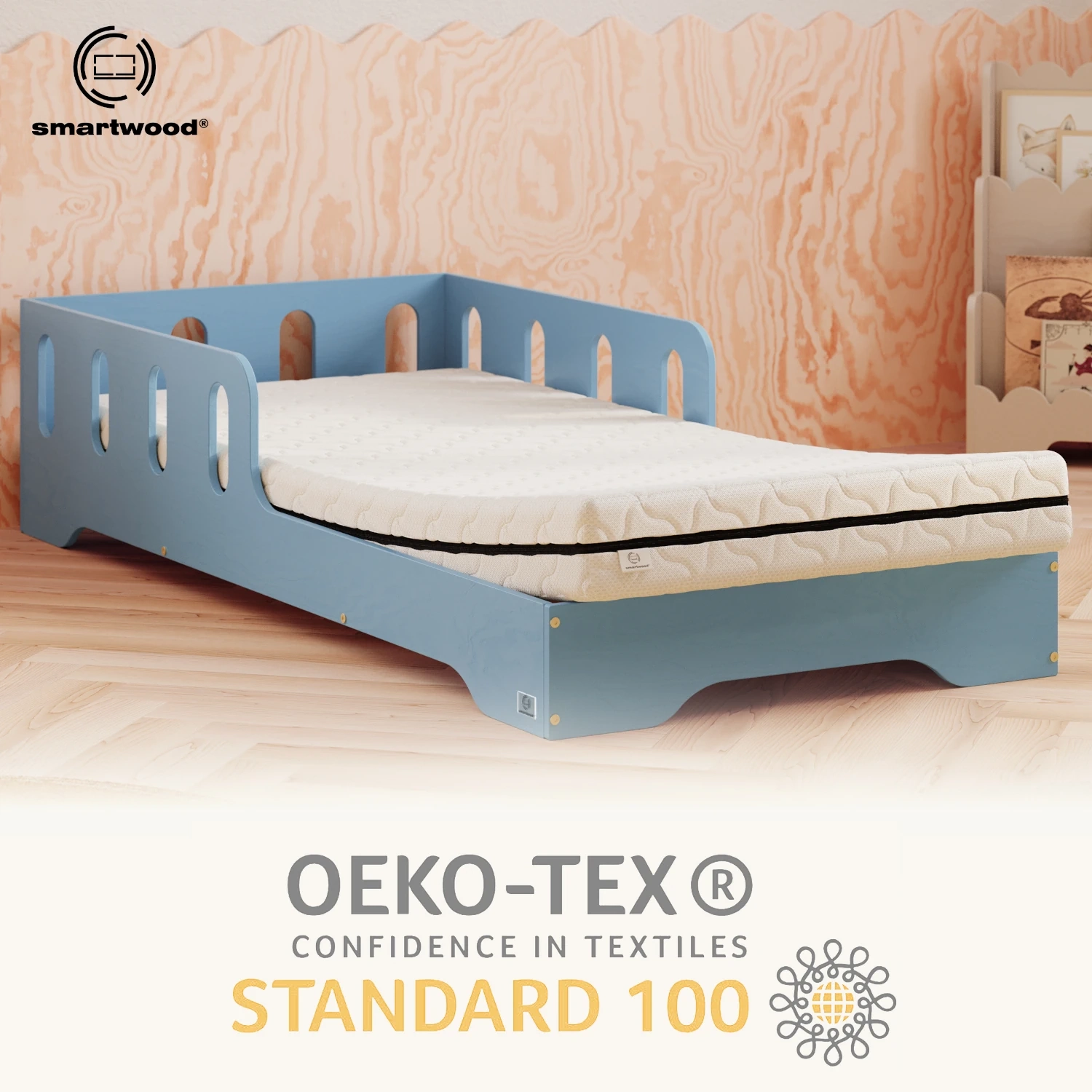 Materac Smart Comfort™ o grubości 9 cm to uniwersalny model o średniej twardości, zaprojektowany z myślą o dzieciach. Dzięki swojej kompaktowej wysokości idealnie nadaje się do szuflad w łóżkach dziecięcych oferowanych w naszym sklepie. Wykonany z pianki Comfort o porowatej strukturze, zapewnia odpowiednie podparcie dla kręgosłupa i zdrowy sen. Certyfikaty CertiPUR™ i OEKO-TEX® Standard 100 potwierdzają bezpieczeństwo oraz najwyższą jakość materiałów. Antyalergiczny pokrowiec pikowany owatą o gramaturze 120 g/m² można łatwo zdjąć i wyprać. Materac dostępny w 14 rozmiarach, co pozwala na dopasowanie do każdego łóżeczka.