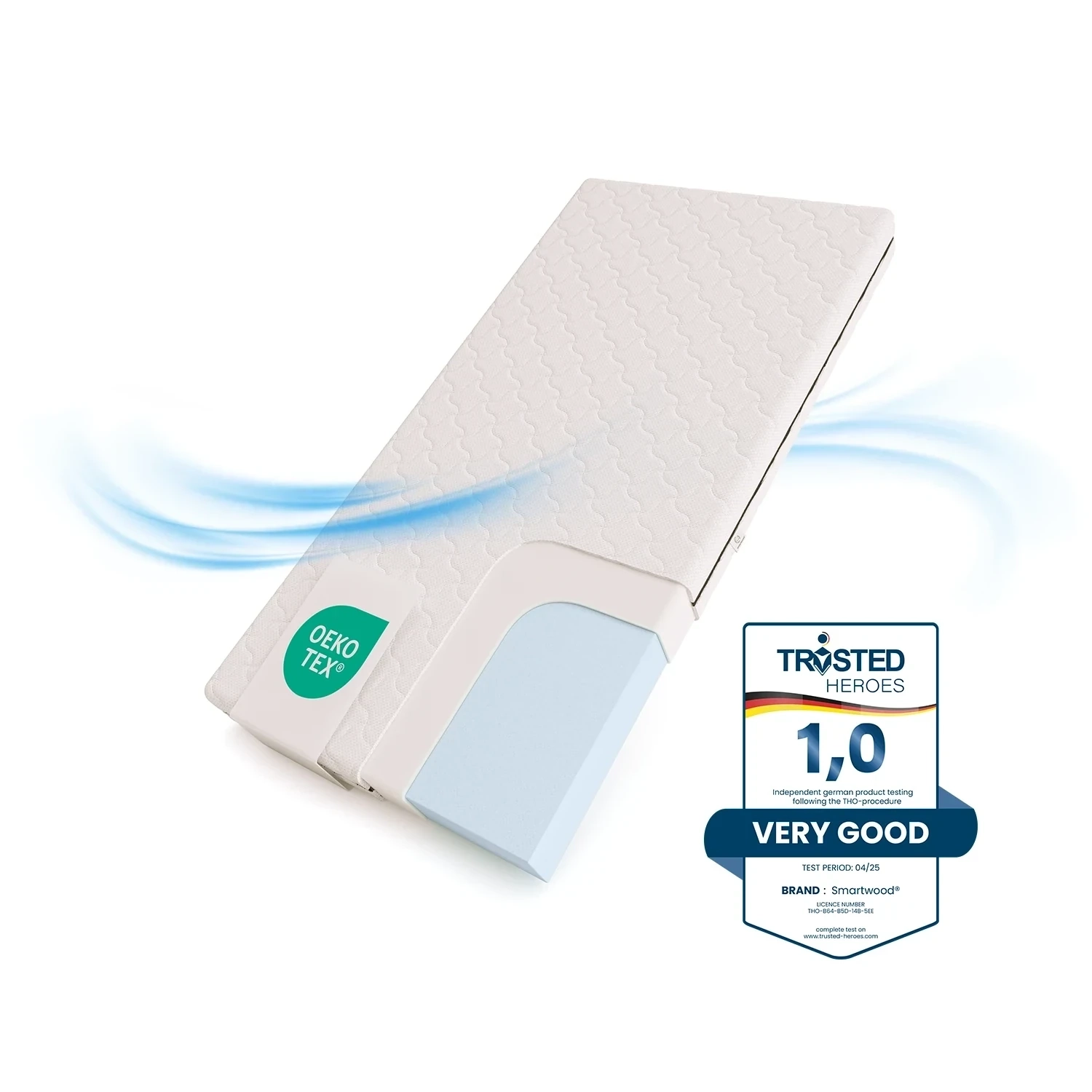 ✔ Oddychająca pianka Comfort – wykonana z zaawansowanej pianki poliuretanowej o porowatej strukturze, zapewnia doskonałą cyrkulację powietrza i skuteczną wentylację. Idealna dla zdrowego i komfortowego snu Twojego dziecka.