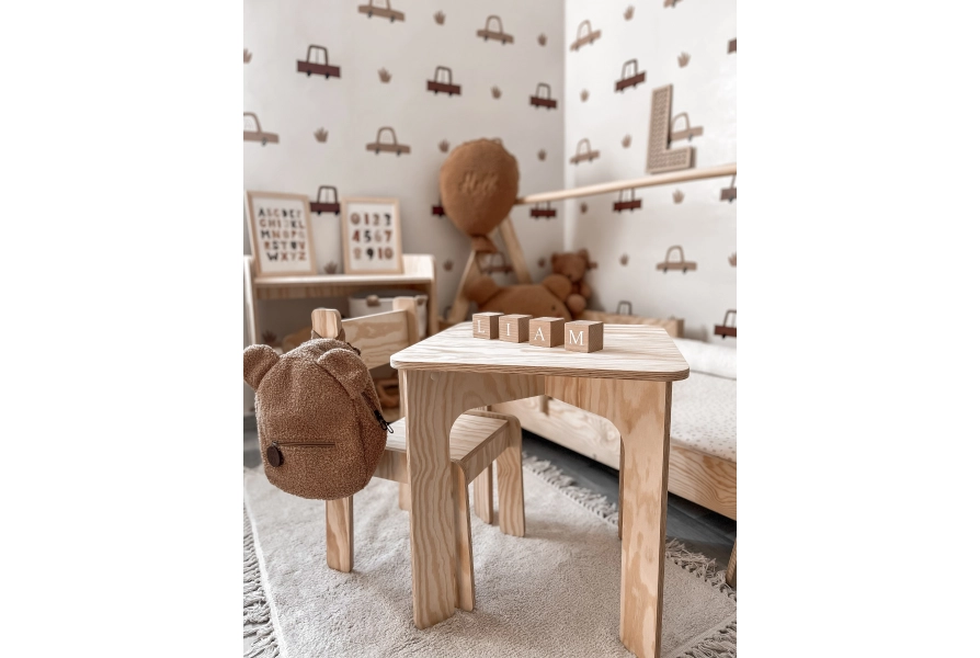 Stolik z krzesełkiem dla dziecka TAB+KR Montessori Drewniany