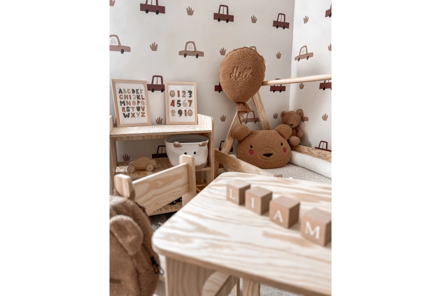 Zestaw MIMI TAB+KR to idealne połączenie prostoty i funkcjonalności, stworzone z myślą o najmłodszych użytkownikach. Wykonany z ekologicznej sklejki sosnowej, zapewnia trwałość i stabilność podczas codziennego użytkowania. Gładkie, zaokrąglone krawędzie dbają o bezpieczeństwo dziecka, minimalizując ryzyko urazów. Kompaktowe wymiary stolika i krzesełka są dostosowane do potrzeb maluchów, oferując komfort podczas zabawy, nauki czy posiłków. Dostępność w 11 kolorach pozwala na dopasowanie zestawu do każdego wnętrza. Prosty, nowoczesny design w skandynawskim stylu sprawia, że zestaw MIMI TAB+KR doskonale komponuje się z innymi meblami z naszej kolekcji, tworząc harmonijną przestrzeń sprzyjającą rozwojowi Twojego dziecka.