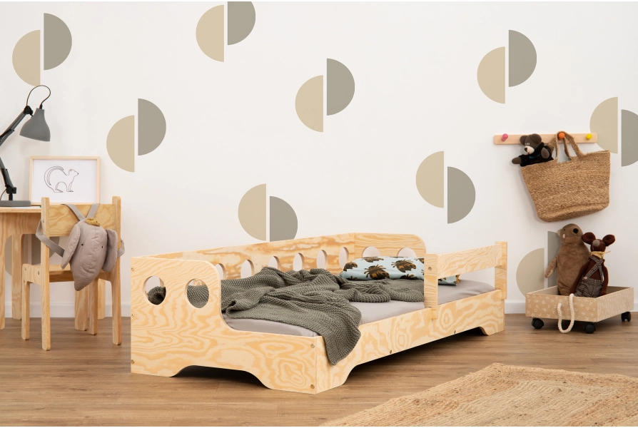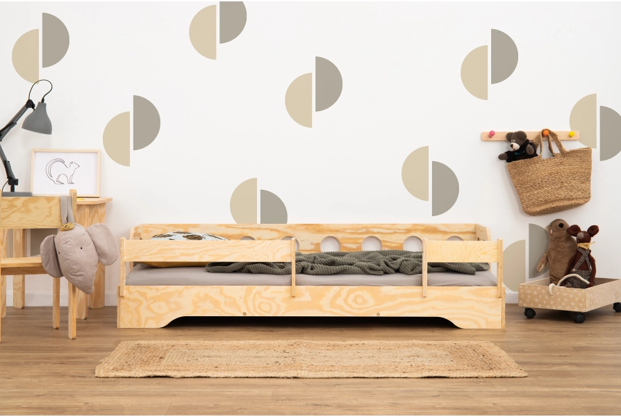 Barierka BR to uniwersalne rozwiązanie dla rodziców poszukujących prostego i skutecznego sposobu na zabezpieczenie łóżka dziecięcego. Wykonana z trwałej sklejki sosnowej, zapewnia solidność i trwałość użytkowania. Dostępna w 5 rozmiarach i aż 11 kolorach, pozwala na dopasowanie do wszystkich modeli naszych łóżek. Jej minimalistyczny design z gładkimi, zaokrąglonymi krawędziami gwarantuje bezpieczeństwo i estetykę. Łatwy montaż sprawia, że w krótkim czasie można zwiększyć poziom bezpieczeństwa dziecka podczas snu. Jest ona nakładana, więc nie wymaga użycia dodatkowych śrub, czy mocowań, a co więcej pozwala na nakładanie i ściąganie jej w dowolnym momencie, w zależności od potrzeb dziecka.