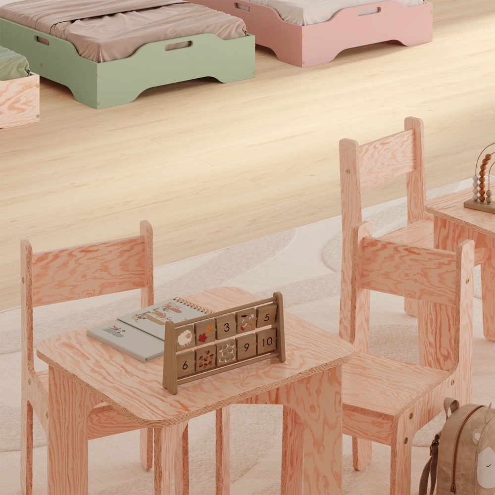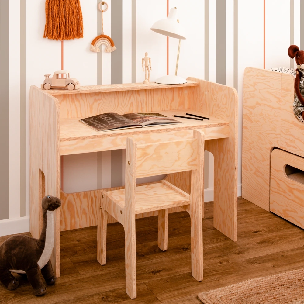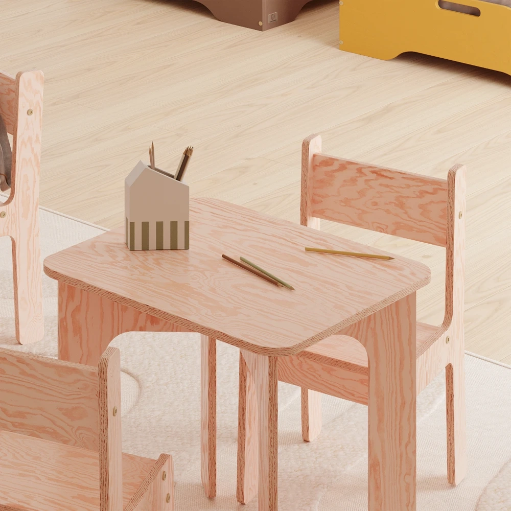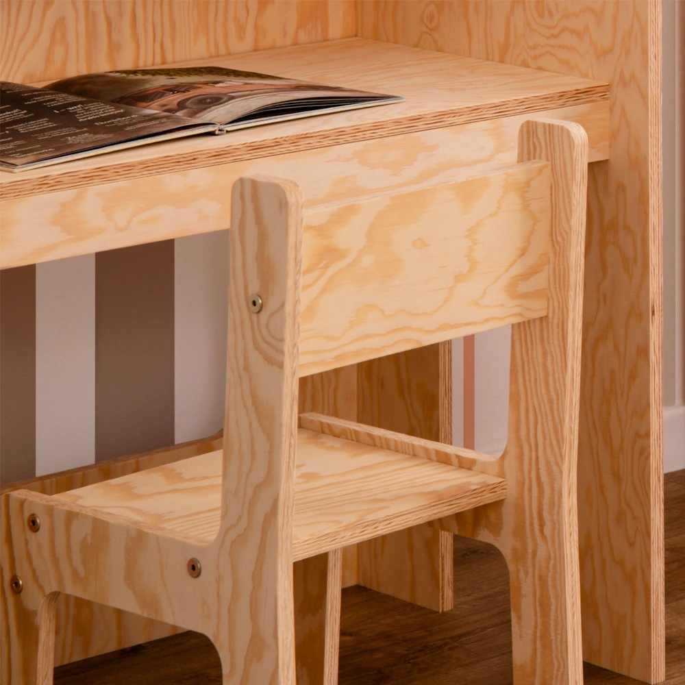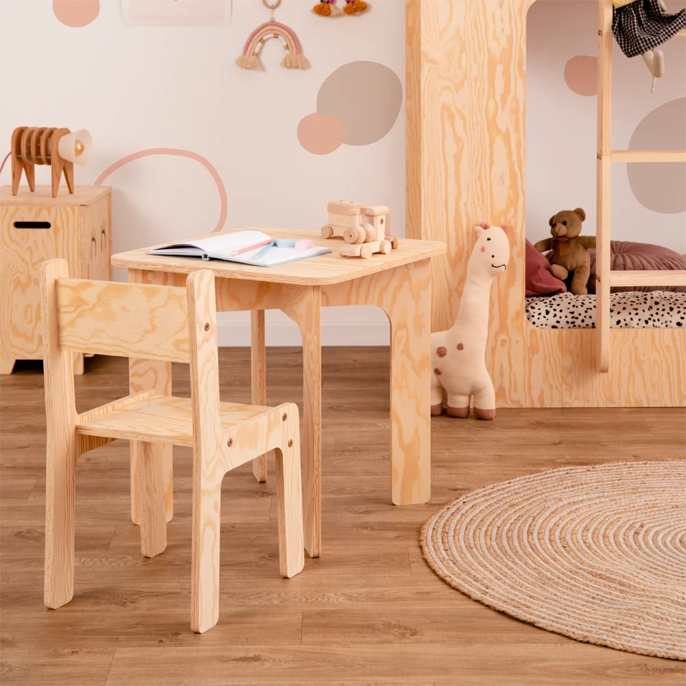Drewniane krzesełko jest wykonane z ekologicznej sklejki sosnowej. Ten naturalny materiał stanowi bezpieczny i zdrowy wybór dla środowiska dziecka. Sklejka sosnowa jest wolna od szkodliwych chemikaliów i lotnych związków organicznych, zapewniając czystsze powietrze w pomieszczeniach i zmniejszając narażenie dziecka na alergeny. Trwała, solidna konstrukcja zapewnia własne, bezpieczne i stabilne miejsce siedzące dla malucha, a jej jasny kolor i naturalne usłojenie dodają odrobinę ciepła i uroku do pokoju dziecka.